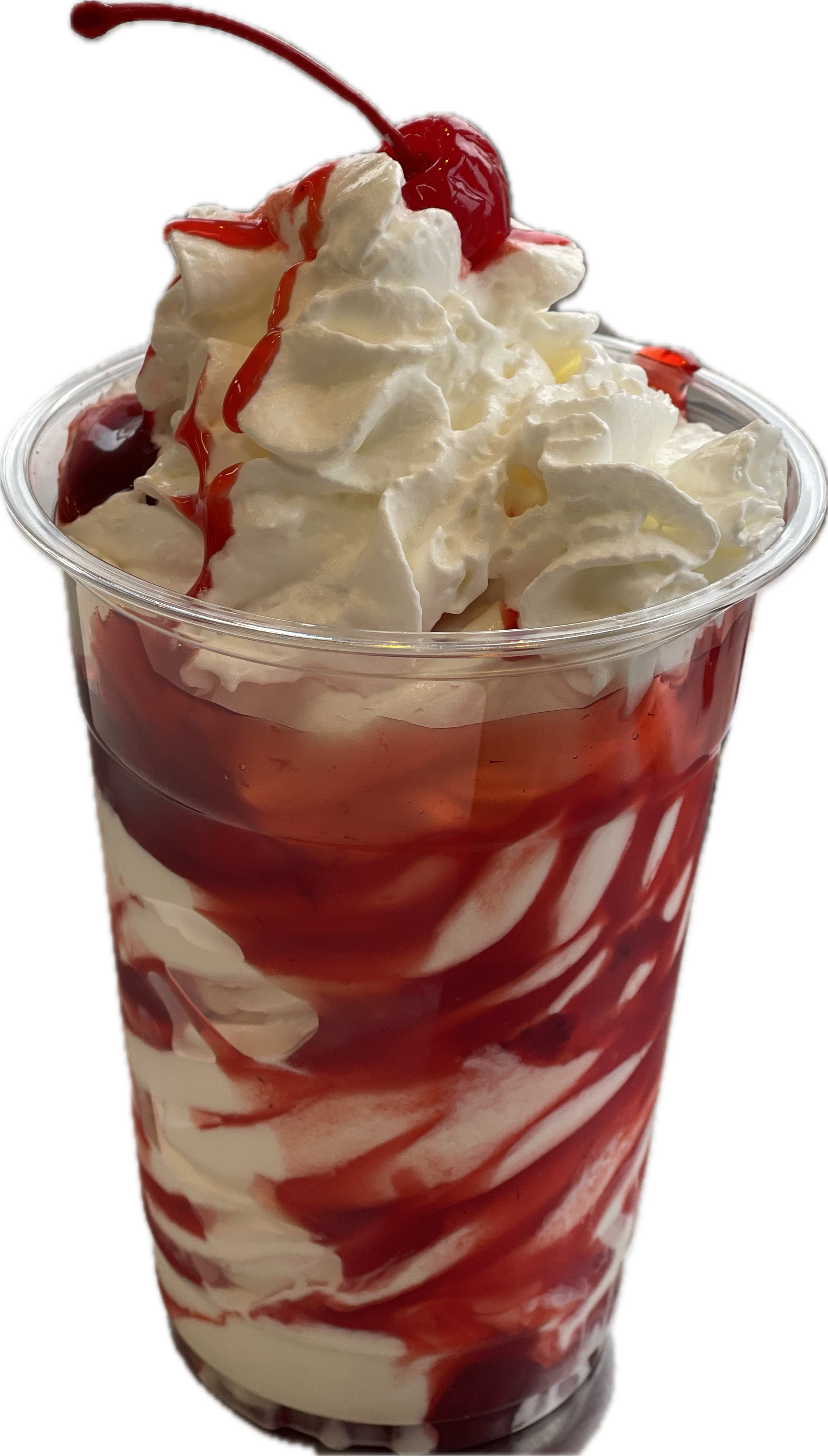 Classic Toppings: Strawberry, Pineapple, Chocolate Syrup, Peanuts, Whipped Cream, and Cherry on top.